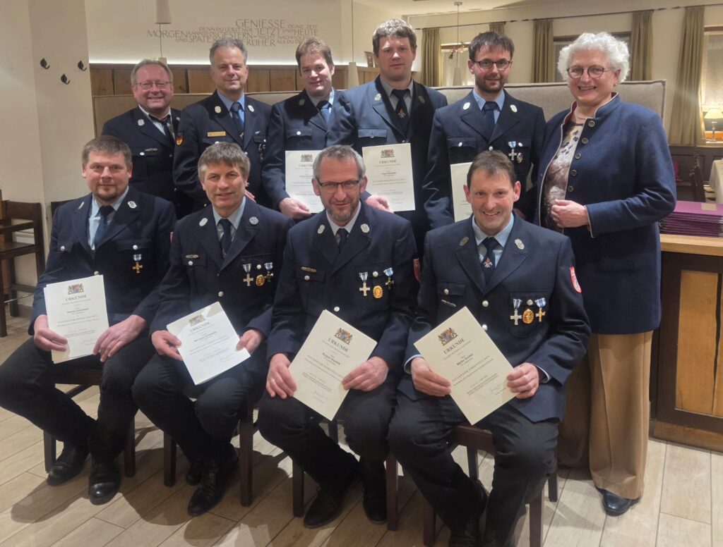 Ein besonderer Punkt der Versammlung waren die Ehrungen für langjährigen aktiven Feuerwehrdienst. Für 25 Jahre aktiven Dienst wurden Franz Neuhofer, Ignaz Rippl und Anton Neuhofer ausgezeichnet. Für 40 Jahre aktiven Dienst erhielten Bernhard Schneider, Martin Gruber, Helmut Genzinger, Roland Stuchlik sowie Konrad Sedlmeier eine Ehrung. Eine besondere Würdigung erhielt Maria Heldt für ihre langjährige Arbeit in der Vorstandschaft, sie war sechs Jahre Beisitzerin und 19 Jahre Schriftführerin der Feuerwehr Lohkirchen.